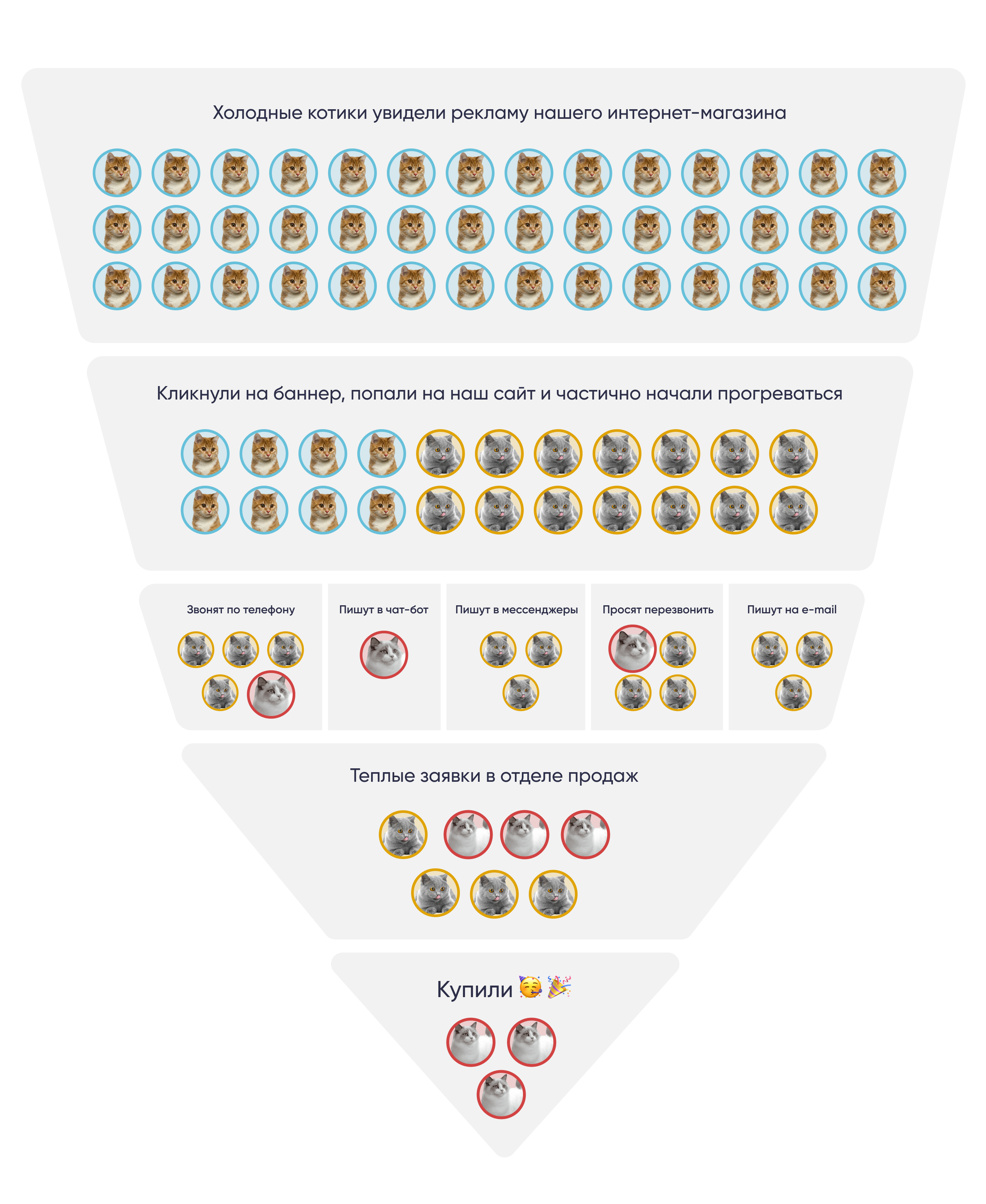 И на каждой ступени нужно своё обращение к ЦА, свой подход с намерением перевести потенциального клиента на следующий этап, то есть прогреть.