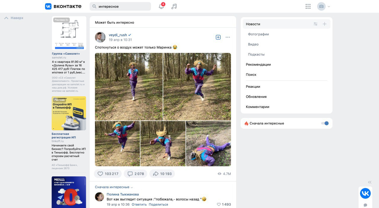 Она делит аудиторию по полу, возрасту, образованию, месту проживания и месту работы, интересам. В соцсетях пользователи сами указывают свои данные в профиле, подписываются на группы и сообщества по интересам, ставят лайки постам с определенной тематикой и так далее. Соответственно реклама встраивается в ленту интересов пользователей.